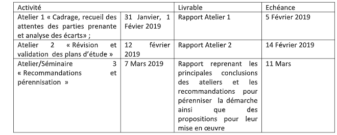 Les livrables attendus suite à chaque atelier sont les suivants :