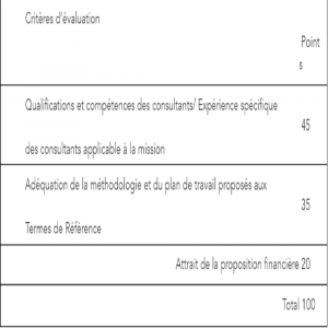 Critères d’évaluation des offres: