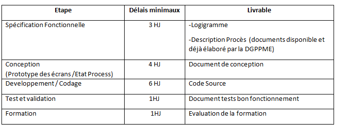 La spécification fonctionnelle est déjà élaborée par l’équipe chargée de cette action auprès du Ministère de l’Industrie (La DGPPME).