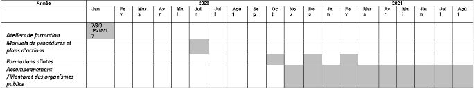 Renforcer les capacités de la DGRPA et des représentants des organismes publics dans la mise en place de plans d’actions pour la mise en œuvre de la loi organique sur le droit d’accès à l’information et de manuels de procédures propres pour chaque type de structure pour l’organisation interne de l’accès à l’information.