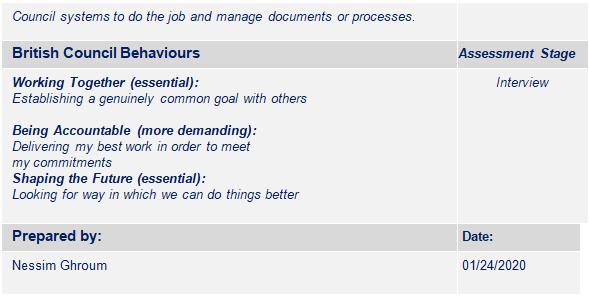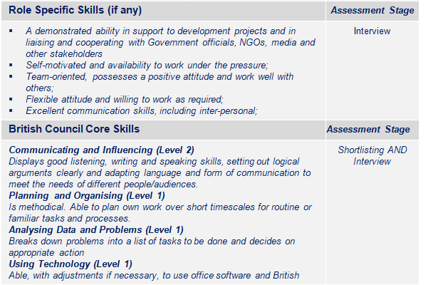 The role will support the achievement of British Council corporate standards and the achievement of relevant policies and procedures.