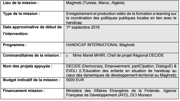 1.1. Cadre de la mission : le programme de Handicap International au Maghreb
