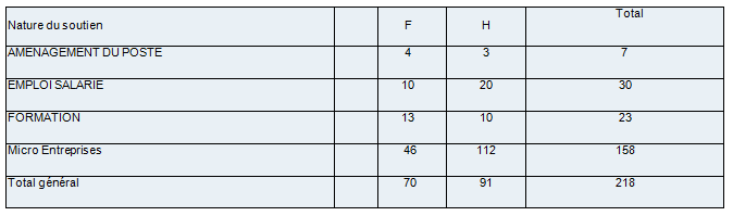 Résultat 2 : Les personnes en situation de handicap améliorent leur employabilité et sont accompagnés dans leur recherche d’emploi ou dans le développement d’activité économique ;