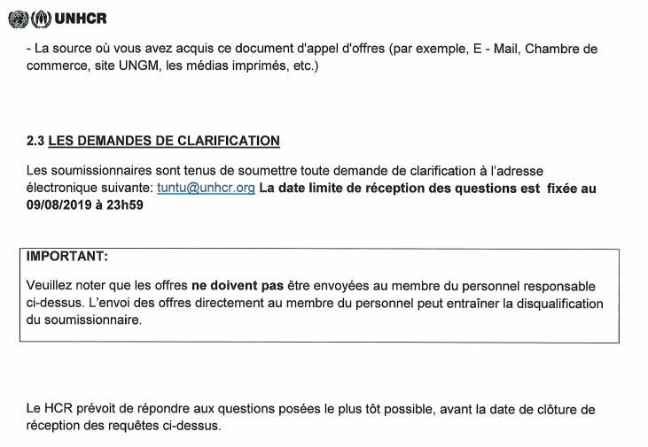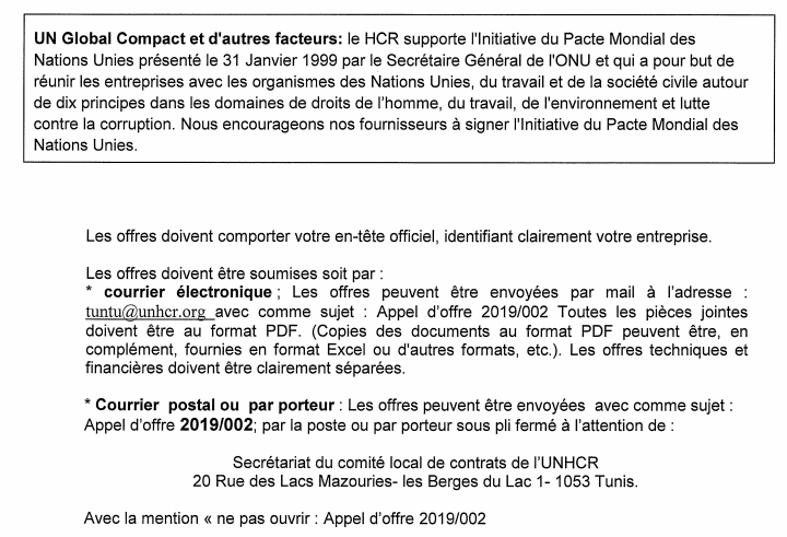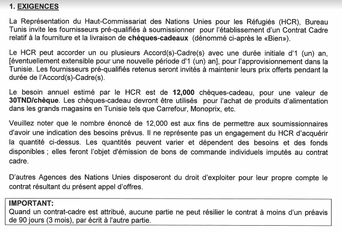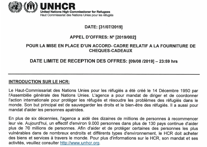 Haut Commissariat des Nations Unies pour les réfugiés lance un appel d’offres pour la mise en place d’un accord – cadre relatif a la fourniture de chèques- cadeaux عودة إلى الفرص