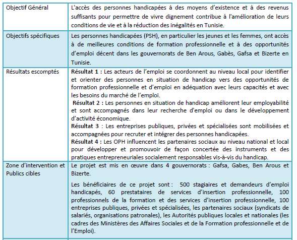 Intitulé du projet : Pour l’accès à la formation et à l’emploi des personnes en situation de handicap en Tunisie