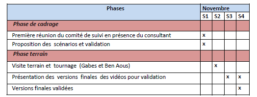 Lieu de la mission : les Gouvernorats de Gabes, Gafsa, Ben Arous et Bizerte