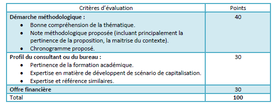 Durée de la mission : 30 jours Du 20/10/2019 au 20/11/2019