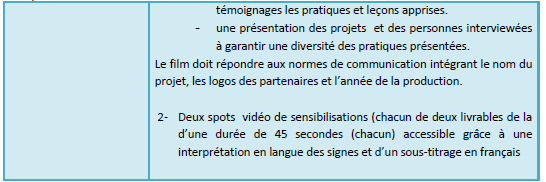 Point d’attention : Après accord portant sur la version finale des vidéos, le prestataire retenu livrera à Humanité et Inclusion : Deux versions du CD original de chaque vidéo