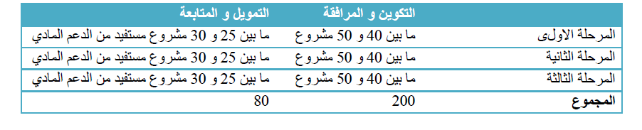 توفير الدعم المادي و المرافقة الجماعية و الفردية ما بعد الإحداث لفائدة ما يقارب 80 مشروعا و تقدر المنحة المخصصة