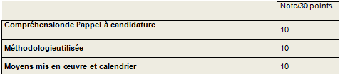 Les offres reçues conformément aux éléments exposés ci-dessus, seront analysées par un comité de sélection selon les critères et les notations suivantes :