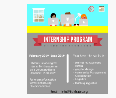 Nature of the Internship: Under the supervision of the Executive iiDebate team, interns will work on project(s) at the Secretariat relevant to their professional interests, scholarship programs and development needs.