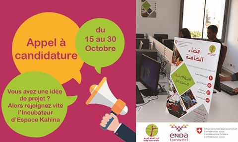 Incubateur Espace Kahina est lancé par Enda Inter-arabe, Enda Tamweel et la Coopération Suisse. Riche de son expérience de 26 ans, enda propose un parcours d’accompagnement individualisé et de formations adaptés aux besoins des jeunes entrepreneurs et, met à leur disposition son expertise en développement de projets entrepreneuriaux.