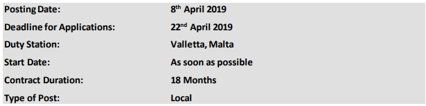 The eMGPP Project Assistant reports to the Project Manager, and s/he is based in Valletta, Malta, in