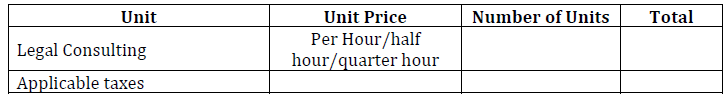 Price information should be presented as hourly/half-hourly/15-min rates for each of the scope of work presented above. Pricing must be valid for at least 60 (sixty) calendar days after the due date for proposal submission. The proposed rates should be fixed and inclusive of all costs to perform, including inspection services, transportation, import duties (if any), and other levies. All applicable taxes must be listed as a separate items. If there are any additional fees not reflected in the table below, such pricing must be fully described in the bid.