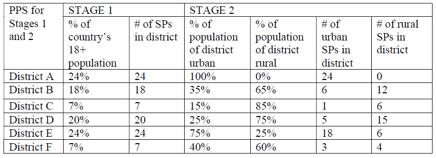 - Stage 2: PPS Stratification by urban/rural (if census data exists)