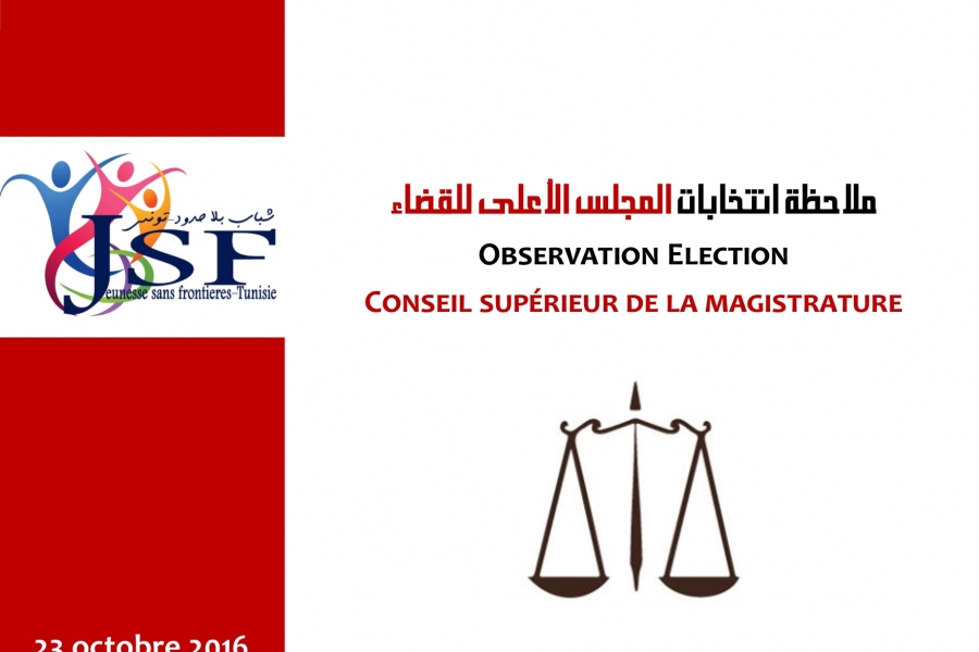 Poursuivant ses efforts visant au renforcement de la démocratie en Tunisie et la garantie d’élections intègres, Jeunesse Sans Frontières envisage d’observer les différentes phases du processus d’élection des membres du Conseil Supérieur de la Magistrature (CSM), une échéance qui permettra la mise en place de l’organe chargé de veiller sur le bon fonctionnement et l’indépendance de la Justice et qui permettra par la suite la mise en place de la Cour Constitutionnelle, un des piliers de l’état de droit prévu par la Constitution de 2014.
