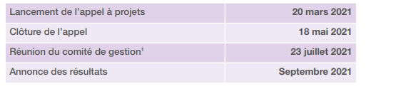 CALENDRIER DE L’APPEL À PROJETS: