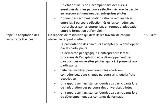 – Donner des recommandations afin de réduire l’écart entre les 3 parcours sélectionnés et les compétences recherchées par les entreprises pilotes en termes d’adéquation entre la formation et l’emploi