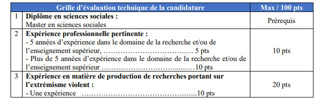 • Expertise requise en matière de conduite de recherche et production de connaissances portant sur l’extrémisme violent ou en lien avec cette thématique ;