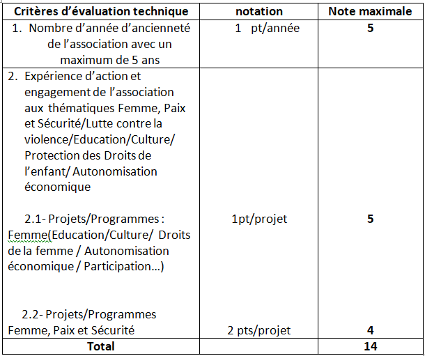 L’évaluation technique se fera selon une grille de critères qui permettra d’aboutir à une note globale pour chaque dossier lesquels seront notés sur 14 points.