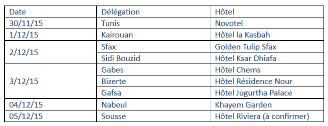 Des journées d’information auront lieu suivant le calendrier ci-dessous :