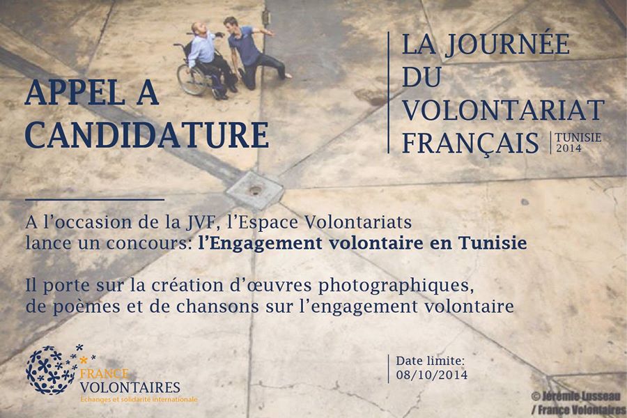 A l’occasion de la JVF, l’espace Volontariats tunisie lance un concours sur l’engagement volontaire en Tunisie. Il porte sur la création d’œuvres photographiques, de poèmes et de chansons sur l’engagement volontaire en Tunisie.