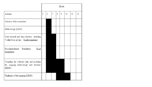 The lead researcher will be in charge of compiling the collected data and providing the mapping methodology and structure.