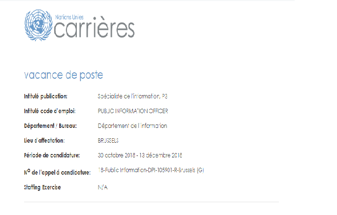L’ONU recrute Spécialiste de l’information à Bruxelles Retour vers les opportunités