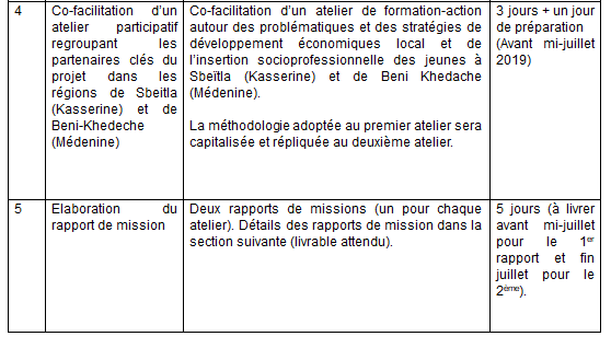 Les ateliers participatifs seront co-facilités par le consultant et le coordinateur technique Entrepreneuriat et Employabilité (cf étapes 3 et 4) ;