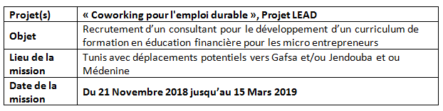 Mercy Corps Tunisie implémente depuis 2014 un curriculum de formation en éducation financière qui est destiné à une population élargie de jeunes, chercheurs d’emploi, employés et micro entrepreneurs. Suite à l’observation d’un besoin plus spécifique, Mercy Corps lancera une formation de formateurs pour 10 formateurs en éducation financière destinée aux jeunes micro-entrepreneurs âgés de 18 à 35 ans. La mission consistera en le développement et l’adaptation d’un curriculum de formation à partir des ressources internes de Mercy Corps Tunisie et également sur la base d’un diagnostic de besoin des micros-entrepreneurs et des bonnes pratiques en termes de gestion financière des micro-entreprises. La mission aura également pour objectif de produire les messages clés sur les besoins des micro-entrepreneurs en termes de formation et en ce qui concerne les services et pratiques adaptées à cette cible. Finalement, un exercice de capitalisation des leçons apprises et de l’appréciation du curriculum par les bénéficiaires et les formateurs devrait être mis en œuvre à la fin de la mission.