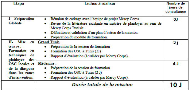 Mission: Formation des organisations de la société civile sur le Grand Tunis et Médenine sur les techniques de plaidoyer.
