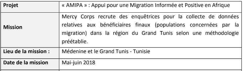 Mercy corps recrute des enquêtrices Retour vers les opportunités