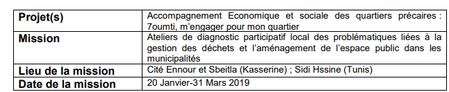Le projet intervient dans 3 municipalités (1) des gouvernorats de Tunis (Sidi Hssine) et de Kasserine