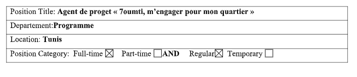 • Une expérience confirmée avec des ONG internationales- agences de développement et des institutions publiques nationales sera un atout