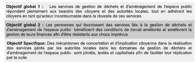 – Quel est le niveau de participation des citoyens/société civile dans la proposition ; mise en œuvre et suivi des services de gestion des déchets et l’aménagement de l’espace public ?