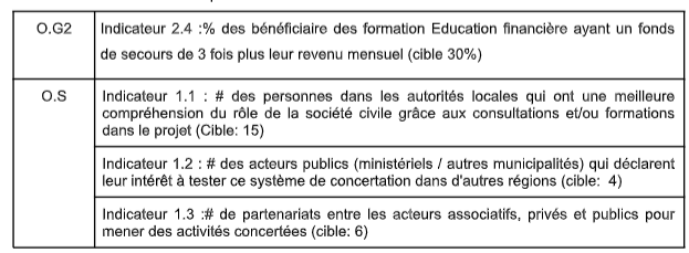 – Quel est le niveau d’atteinte des indicateurs des résultats, objectif spécifique et objectif globale ?
