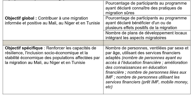 - Le renforcement de l’inclusion financière et de la stabilité économique des populations concernées par la migration au travers d’une éducation financière améliorée, d’un accès à des filets de sécurité financière et à des services financiers adaptés à la mobilité et aux jeunes ;