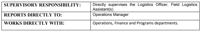 The Senior Logistics Officer will be part of the operations Department team which is committed for implementing and maintaining the highest standards of efficiency and integrity in all Mercy Corps (MC) internal procedures.