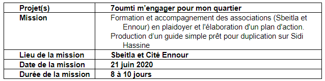 Mission de consultation (Formation et accompagnement des associations) – « 7oumti, m’engager pour mon quartier » Retour vers les opportunités