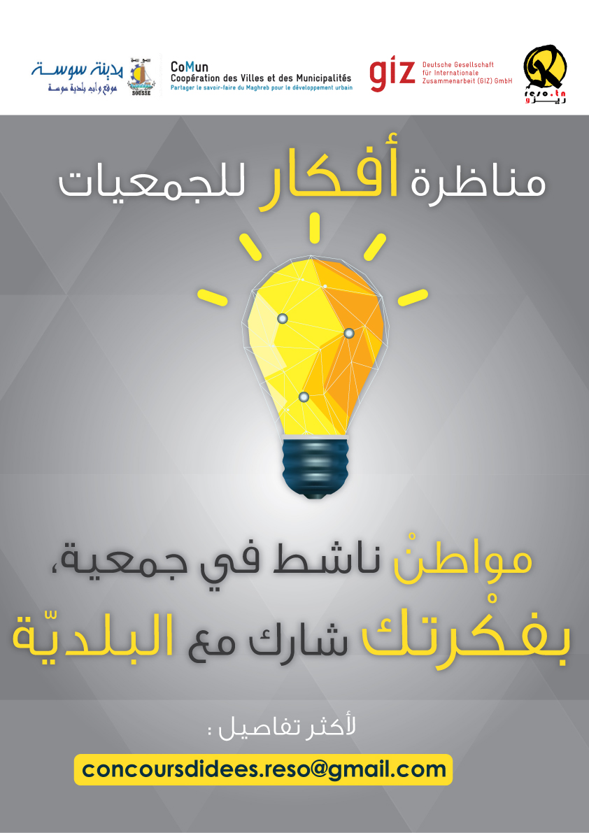La Municipalité de Sousse et la GIZ organisent le “concours d’idées” destiné aux associations locales de la ville de Sousse. Le but de ce concours est d’encourager les jeunes à travailler dans leur localités au sein des associations.