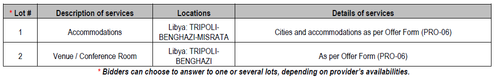ACTED (Agency for Technical Cooperation and Development), is inviting suppliers to submit offers for the following lots: