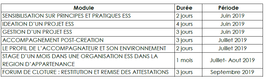 L’objectif de la session de formation est la création d’un groupe d’accompagnateurs locaux dans chaque gouvernorat qui seront capables d’encadrer les initiatives/projets de l’économie sociale et solidaire.