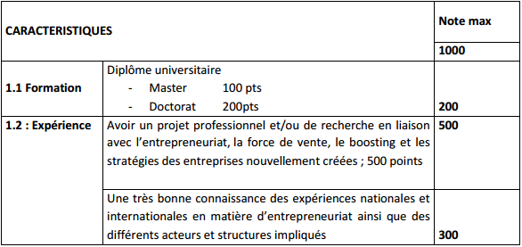 • Une très bonne connaissance des expériences nationales et internationales en matière d’entrepreneuriat ainsi que des différents acteurs et structures impliqués.