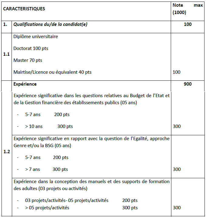 • Disposer d’une expérience significative en rapport avec la question de l’Egalité, approche Genre et la BSG (05 ans) ;
