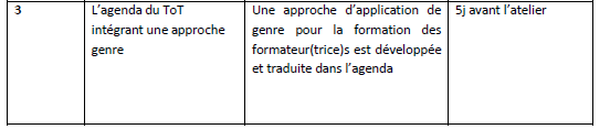 - Contribuer à l’organisation des formations de formateur(trice)s afin de sensibiliser tout le groupe aux discriminations basées sur le genre et aux mesures relatives à mettre en oeuvre et assurer des séances de suivi .