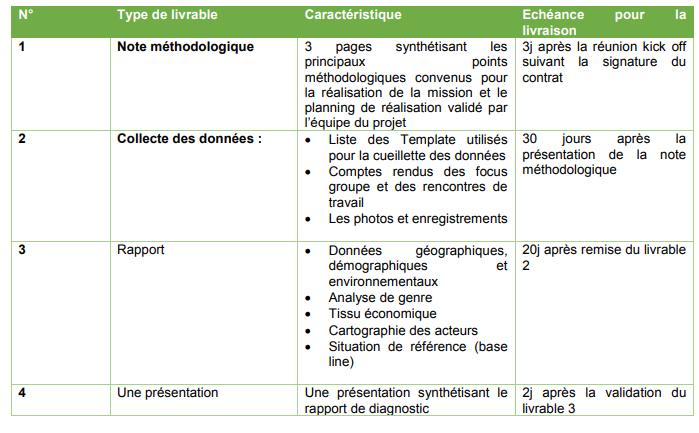 Le choix de ces méthodologies dans le processus d’élaboration du diagnostic ainsi que leur description seront détaillés dans l’offre technique.