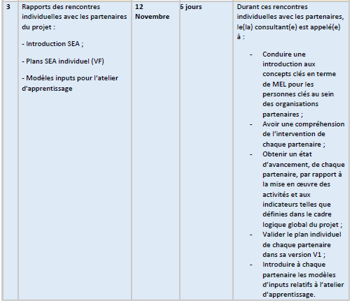 Sous la supervision directe du chargé suivi, évaluation, apprentissage et redevabilité (SEAR), le(a) consultant(e) est chargé(e) de l’appui au projet pour la mise en oeuvre des activités, le suivi, le reporting ainsi que l’évaluation du projet et la documentation des apprentissages.