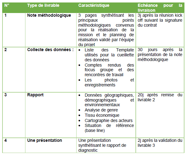 Le choix de ces méthodologies dans le processus d’élaboration du diagnostic ainsi que leur description seront détaillés dans l’offre technique.