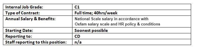 • Eager to adhere to Oxfam’s principles and values as well as the promotion of gender justice and women’s rights.