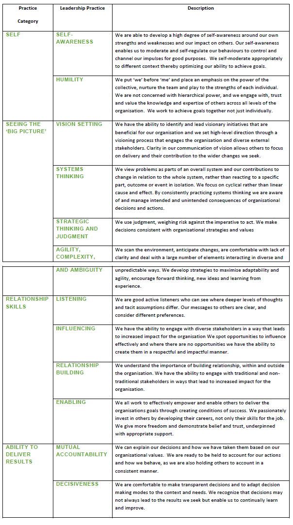 Behavioural competencies (based on Oxfam’s Leadership Model)